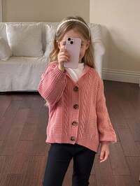 SHEIN Cárdigans para niñas, beige, blanco, amarillo claro, albaricoque, tejido cómodo y creativo, minimalista cuello en V, manga farol, puños acanalados, moda, para todas las estaciones, adecuado para jugar, uso diario, escuela, ligero, cómodo, personalizado, lindo, elegante, nuevos llegados, chaqueta de punto, primavera/verano #9 Más vendidos