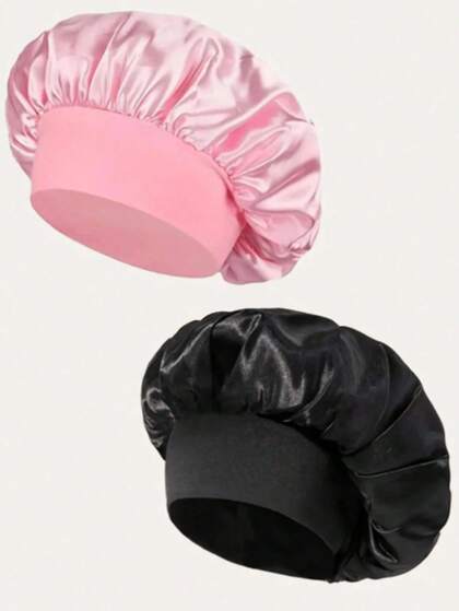 2 piezas/1 pieza Gorro de dormir de seda, Gorro de cabello de satén, Gorro de mujer de ala ancha y alta elasticidad, Gorro de dormir de charmeuse, Gorro de cuidado del cabello de satén de alta gama, Diadema de seda para cabello rizado (Negro y Dorado)
