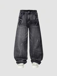 SHEIN Explorewe Jeans de mezclilla lavada de corte recto casuales y elegantes nuevos para jóvenes