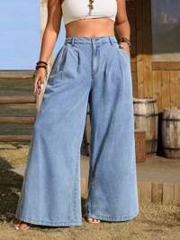 SHEIN PETITE CURVE Pantalones vaqueros de talle alto y pierna ancha lavados de talla grande, informales