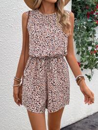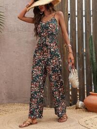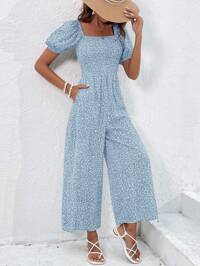 PoésellePoéselle Mono amarillo mantequilla, mono, mono estampado, mono pequeño con flores, diseño de hojas de loto en capas, divertido y lindo, mono con estampado floral ditsy casual para mujer, adecuado para uso diario, salir a la calle, citas, vacaciones, bodas y otras ocasiones