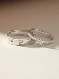 2 piezas Anillo de pareja con flores de rosa para niños y niñas, regalo de cumpleaños para novia, San Valentín, mamá, madre, Día de la Madre