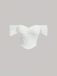 SHEIN MOD Blusa con estructura de corsé, hombros descubiertos, fruncido en el busto y botones delanteros