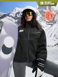 In My Nature Chaqueta de forro polar con cremallera, cuello alto y parches con letras para mujeres, para exteriores, tops de otoño/invierno para mujeres
