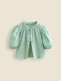 THE HAPPY LOOK Camisa casual de vacaciones de gasa verde con cuello de volantes, mangas abultadas y lazo para adolescentes, temporada de regreso a la escuela en primavera y verano
