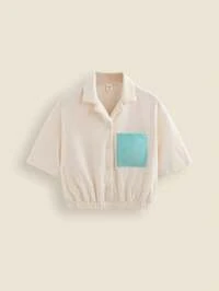 THE HAPPY LOOK Chaqueta camisa informal de manga corta con bolsillo delantero de tela tipo toalla de bloque de color, para niñas adolescentes, primavera y verano