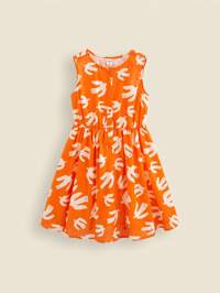 THE HAPPY LOOK Vestido casual de algodón tejido naranja con estampado de gaviota sin mangas con talle ceñido para vacaciones de adolescentes, primavera-verano
